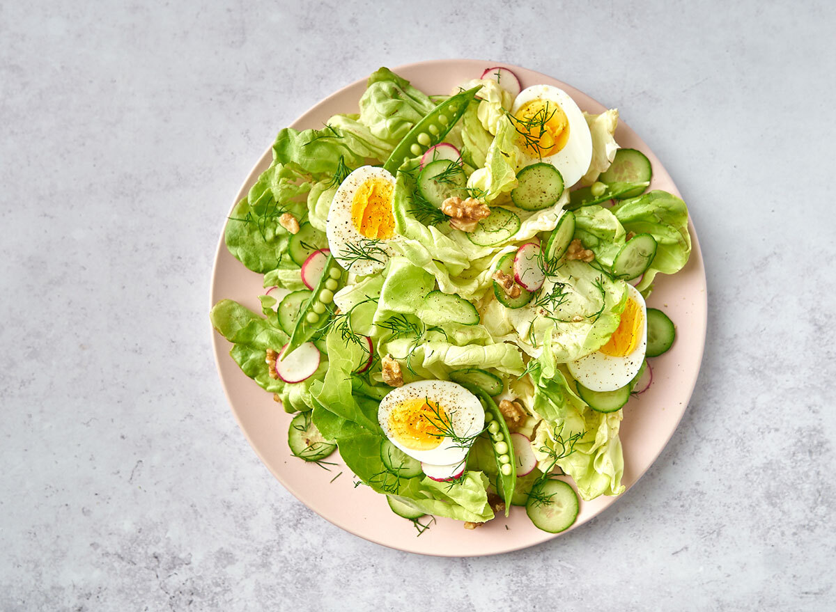 Salat zum Frühstück ist der perfekte leichte Weg, um Ihren Tag mit Gemüse zu beginnen.