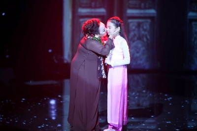 In 2014, little girl Phuong My Chi participated in the Favorite Songs program at the live show in March with the familiar song My Hometown in Flood Season. Thanks to its number one position for 5 months, this song has become the favorite song of the year, marking the child singer's success in professionally conveying the song to the audience.