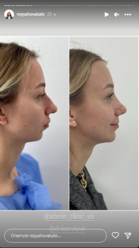La blogueuse populaire admet qu'elle ne se souciait pas particulièrement de son nez, qui s'était cassé dans son enfance, avant de devenir célèbre. Mais après une vague de haine acerbe sur les réseaux sociaux, elle a abandonné et s'est rendue chez le chirurgien vedette - à l'époque le mari de la chanteuse Slava Kaminska. Le médecin a assuré que la forme du nez resterait pratiquement la même.