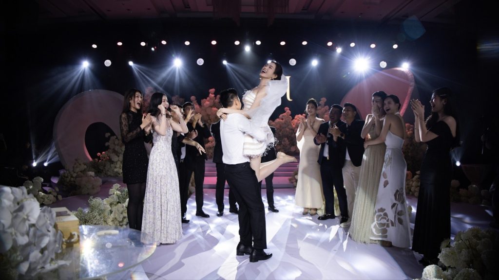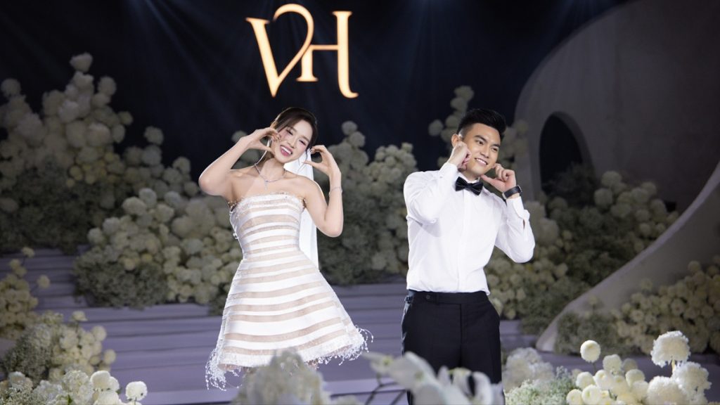 Setelah upacara yang khidmat dan emosional, Do Ha dengan gaun putih pendek sederhana naik ke panggung untuk menari bersama suami dan teman-temannya, menciptakan suasana yang sangat membahagiakan di pesta pernikahan. Berkat koreografer profesional yang mementaskan pertunjukan tari tersebut, keduanya menghabiskan dua hari latihan untuk bisa tampil bersama. Do Ha dan suaminya menari secara medley Anda adalah pengecualian saya – Satu kehidupan dengan gerakan tarian yang lucu. Selain itu, mereka juga menari bersama "teman dekat" mereka yang merupakan wanita cantik terkenal seperti Luong Thuy Linh dan Doan Thien An diiringi musik. Menikahimu oleh Bruno Mars. Sesuai dengan standar "bakat umum" yang serius, Viet Vuong terkadang bingung dan lupa gerakannya. Namun, setelah istrinya "mengingatkannya", dia mampu kembali ke ritmenya.